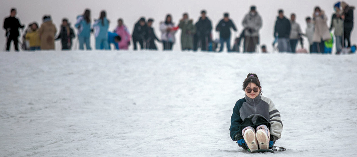 лепит взгорье, собирая снег
